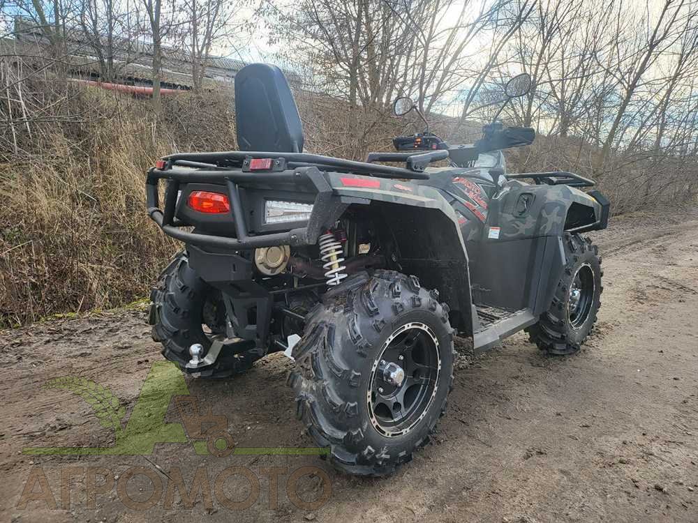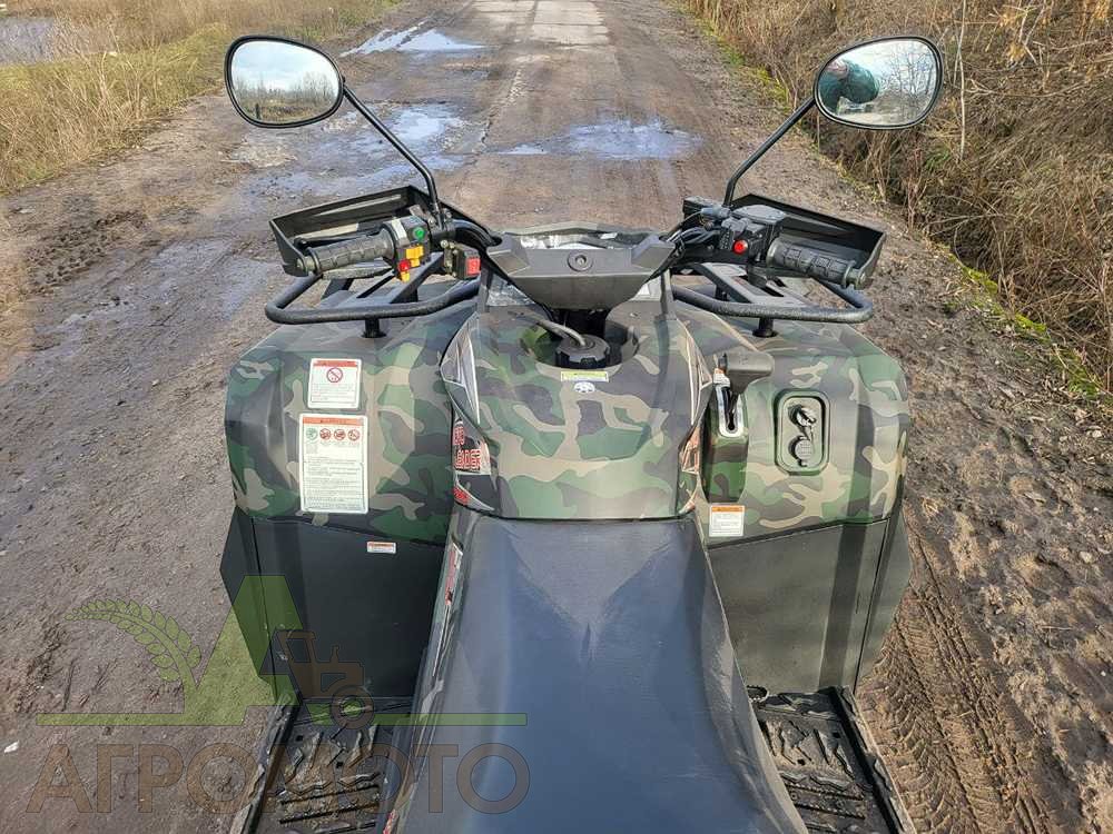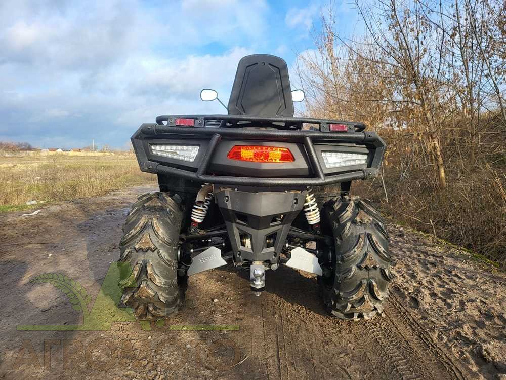 - Комплектація. Квадроцикл укомплектований системою гальмування мотором при їзді на спуску, системою розподілу тягового зусилля між осями, високотехнологічною трансмісією CVTech, легкосплавними дисками R14, електричним підсилювачем керма, двома багажниками, світлодіодною оптикою, газо-олійними амортизаторами з набором регулювань, спинкою і ручкою пасажира, багатофункціональною панеллю приладів, захистом рук, майданчиком для перевезення вантажів, лебідкою, фаркопом і сталевим бампером.